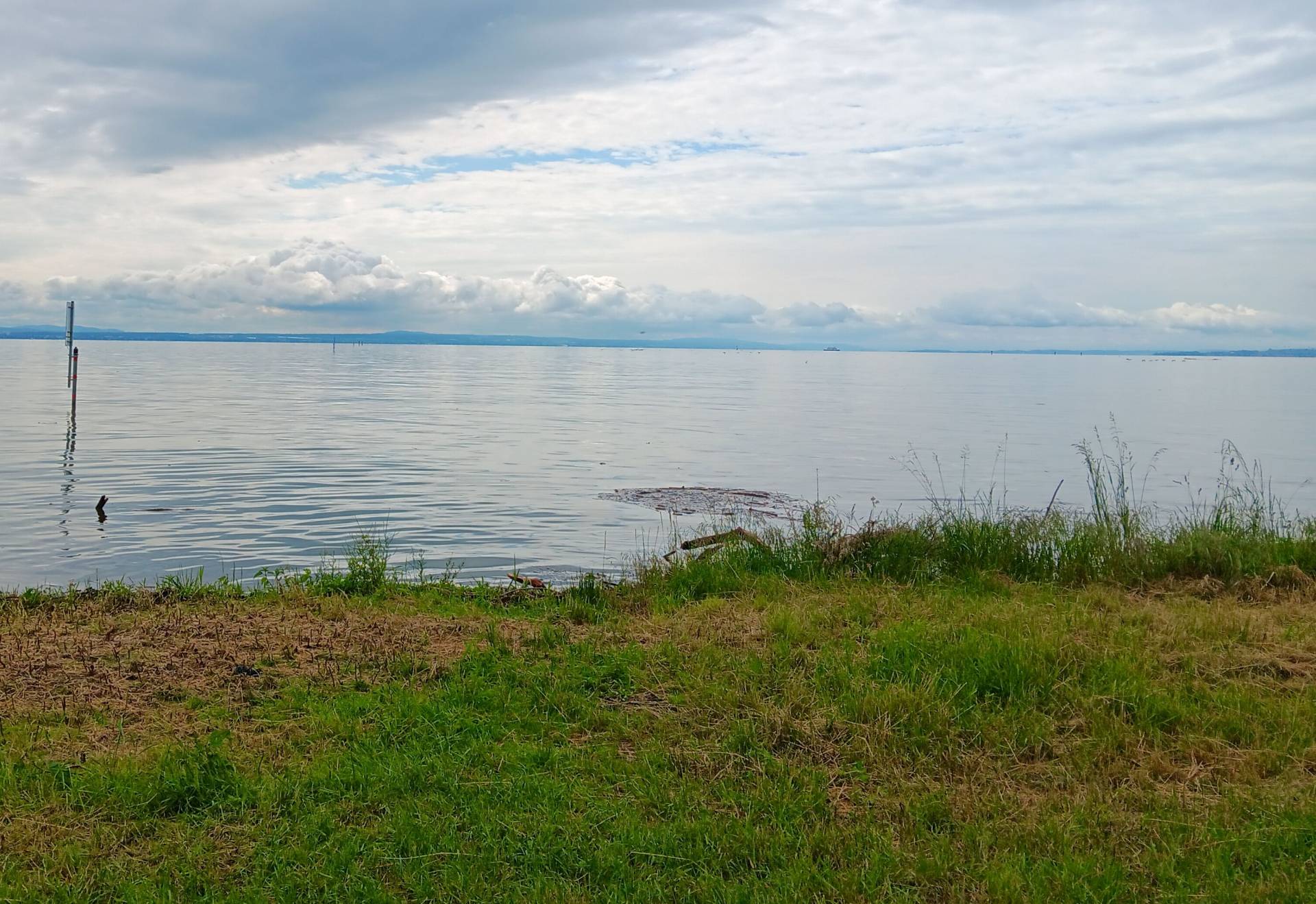 Trotz des strömenden Regens und des überfluteten Bodensees gelang uns die Überfahrt von Romanshorn nach Friedrichshafen, obwohl der Himmel wolkenverhangen war. Die Überfahrt erinnerte eindrucksvoll an die Bezeichnung „Schwäbisches Meer“, da kaum mehr Ufer zu sehen war. Dennoch erreichten wir unser Ziel in bester Laune.