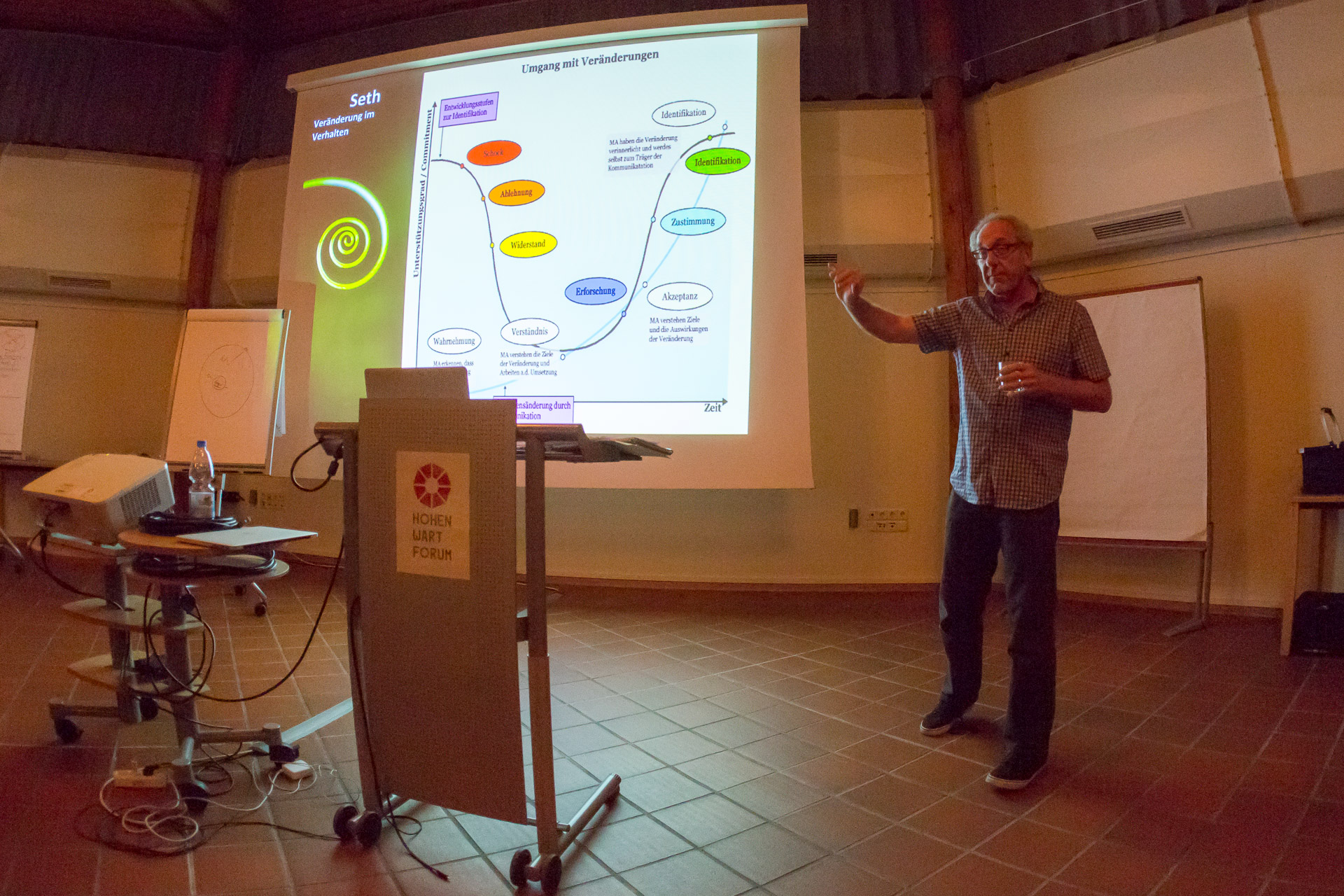 Nach einer kurzen Mitgliederversammlung stellte uns Maurizio eine Seth-Conference in den USA vor, die ohne physische Anwesenheit der Teilnehmer aus Referaten von bekannten Persönlichkeiten bestand. Er erklärte zudem die Pläne des Seth-Verlages.